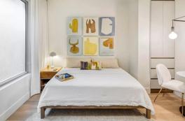 Residence 6G is a southern-facing 406-square-foot home that utilizes every ounce of space to its maximum potential. It features a full appliance package of high-end Miele finishes, a dishwasher, and an in-unit Miele washer dryer. The south-facing light flows in to create an abundance of tranquility and warmth throughout the unit. This residence features wide plank 8-inch European Oak flooring, ceiling heights of up to 9 feet, and quadruple pane oversized windows which simultaneously provide natural light and reduced noise capabilities.
