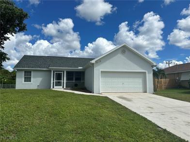 Freshly painted 3 bedroom plus den, 2 bath, 2 car garage house for rent in NE Cape Coral. Remodeled bathrooms, laminate floors. Convenient location. Ready to move in.