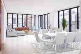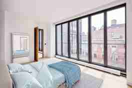 The interiors have been thoughtfully designed by Thomas Juul-Hansen. Apt 6B is a corner 3 bed, 3,5 Bath, with 3 exposures, incredible natural light, and open SOHO VIEWS. Other highlights include: Wide-plank solid oak floors throughout contrast beautifully with a multitude of fully operable floor-to-ceiling, French door style windows. The handcrafted kitchen cabinetry by Smallbone of Devizes continues that same ethos of quality and warmth and are complemented with marble countertops, Wolf cooking appliances including double ovens and warming drawer, Sub-Zero refrigerators, and Miele dishwashers. Spectacularly scaled master suites come complete with a sumptuous master bathrooms containing marble slab floors and walls, bleached zebrawood cabinetry, Toto Neorest toilets, Lefroy Brooks fixtures, and double rain-shower heads with steam-showers. Additional luxury is provided by expandable, smart-home technology that controls lighting, HVAC and window treatments.