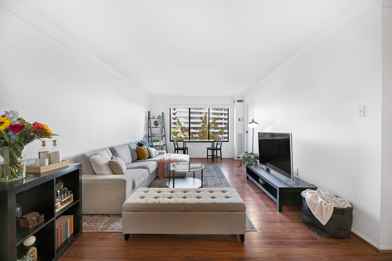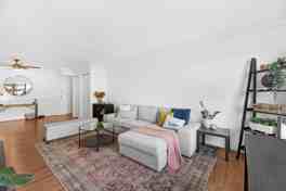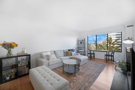 Welcome home. You will love this incredible sun drenched spacious home. The unit boasts a terrific open concept living/dining space that flows seamlessly to a modern kitchen. The open concept allows for plenty of design options for living, office, and dining. The kitchen has a built in breakfast bar and has been newly remodeled with luxury updates. Both bedrooms are ample in size along with generous closet space. While the home has excellent natural light there are blackout shades in all bedrooms and motorized shades in the living room. The home also boasts a balcony for some private outdoor space. The building amenities include an outdoor pool, tennis courts, two dog parks onsite, a gym, and a convenience store inside.