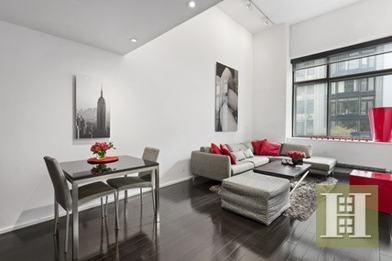 Perfect short-term furnished rental in a luxury 5th Avenue building. The apartment has soaring high ceilings and Brazilian cherry hardwood floors giving this unit an open, spacious feel. The open kitchen has all of the high-end appliances of a chefs kitchen with: Meile dishwasher, Bertazzoni Stove, Liebherr Fridge, Franke stainless steel sink, and Multi Pure drinking water system. The second floor roomy bedroom has 4 large closets and its own half bathroom. Even in bustling midtown this apartments sound proof window keep out the city noise. This unit has tons of storage space, a shoe closet, and bedroom storage. This apartment is move-in ready as it comes equipped with dishes, glasses, and all living essentials. Please reach out if you want to see the apartment as it's an easy show since I live in the building.