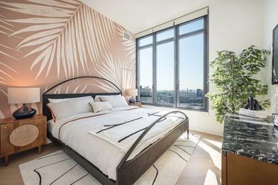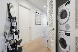 Quiet and serene this premium apartment features views of the historic courthouse and park. Be the first to live in this great flex-1 unit featuring expansive floor-to-ceiling windows, natural oak wood floors, and a gourmet kitchen with full-sized stainless steel appliances and a gas range. Apartment also includes a walk-in-closet, in-unit washer/dryer and thoughtful details including a recessed quartz shower niche, oversized medicine cabinet, individually controlled heating and cooling system and keyless entry. Photos are representative of finishes.