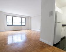 This newly renovated SEMI-ALCOVE STUDIO is perfect. The living space is great for entertaining guests. The separate kitchen has an abundance of counter space, custom-finished cabinets, and beautiful appliances.