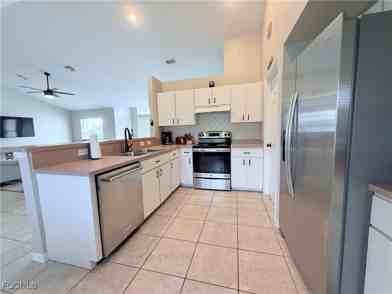 AVAILABLE FOR ANNUAL RENTAL! Call today to schedule your private showing of this PET-FRIENDLY, 3 bedroom, 2 bath home, with an attached 2 car garage! Home can be rented turnkey furnished for $2,200/month. With 1600 sqft under air, and cathedral ceilings, you'll be amazed at how spacious this home feels. Plus, TILE FLOORS THROUGHOUT make home maintenance incredibly easy. Step inside and be greeted by an open floor plan with formal dining/office area plus living room that opens to your screened lanai overlooking your MASSIVE, FULLY FENCED backyard! The eat-in kitchen, is a cook's delight with cabinet space galore and breakfast bar. The primary suite offers two closets (one large walk-in), sliders to the lanai, plus dual sinks and shower. A split plan, guests will love the privacy of this home's layout. Best of all, you'll appreciate the tranquil preserve view from the lanai ~ the perfect place to enjoy your morning coffee or evening cocktails. Located in a quiet neighborhood, and close to Chiquita Blvd and Pine Island Corridor, you have easy access to a myriad of shopping and dining options, Home Depot, Olive Garden, Target, Wal-Mart, and so much more! Call today! (Photos of lawn have been edited to show potential.) Tenant approval subject to credit, income, and background check.