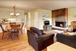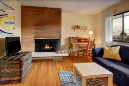 Top floor, two-bedroom, fully-furnished apartment sits up high on the hill overlooking lush mature trees and a lovely territorial outlook. Old growth oak flooring greet you as you enter the generous living/dining room decorated in bright primary colors with a touch of shabby chic pieces. An old Steamer trunk secures the flat screen with expanded cable set up. You’ll want to pick up some Presto Logs at the local market for the wood burning fireplace. Dining room features a vintage wood table and chairs to sit 4 or more very comfortably. The kitchen is well stocked for at-home meals, whether you bring your own recipes or do take-out. Desk space is more than adequate for using your laptop with hardwired or Wi-Fi provided. One large bedroom is outfitted with a queen bed, all linens supplied. The larger bedroom has 2 twin size beds, all linens supplied. One designated parking space is close to the apartment. A very special unit!