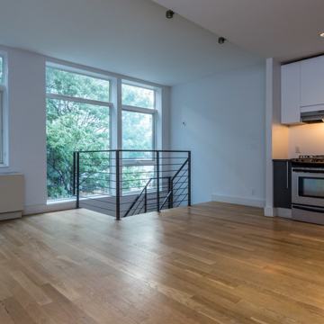 2 Bed / 1.5 Bath in Bushwick, Brooklyn. Pets are allowed. This beautiful duplex has floor to ceiling windows on each level. One and a half bathrooms and a view of the most amazing courtyard you have ever seen. Not to mention the building has more amenities than you can count. Gym, screening room, bike storage, roof deck, barbecue pit, dog park, recording studio, and more!