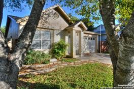 This charming one-story home in the sought-after Hunters Chase Subdivision offers a perfect balance of comfort and functionality with its open floor plan and inviting spaces. The living room welcomes you with porcelain flooring and a ceiling fan, while the kitchen boasts matching porcelain tile, updated cabinetry, granite countertops, and a spacious walk-in pantry/laundry room for added convenience. A cozy family room creates the ideal spot for relaxing evenings or family gatherings. The master suite features a generous walk-in closet, single vanity, and a large walk-in shower, while secondary bedrooms provide plenty of space for family or guests. Outside, the private backyard offers a patio slab, storage shed, and privacy fencing—perfect for weekend barbecues or quiet nights under the stars. Ideally located near major highways, UTSA, USAA, Fiesta Texas, shopping, and dining, this home delivers a welcoming retreat with easy access to everything you need.