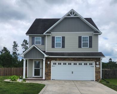 Welcome to this charming 3-bedroom, 2.5-bathroom home located in the desirable Sagewood Community. This property boasts a gas fireplace, perfect for cozy evenings, and a two-car garage for your convenience. The home also features a storage shed and a large fenced yard, offering plenty of space for outdoor activities. Inside, you'll find a walk-in closet and a pantry, providing ample storage. The master bath comes with a dual vanity, adding a touch of luxury. The laundry room is conveniently located upstairs. As part of a vibrant community, you'll have access to a community pool and a basketball court. The property is also conveniently located close to the Camp Lejeune Back Gate. Please note, no dangerous breed dogs or mixes with dangerous breeds are allowed. Tenants are responsible for verifying the square footage, which is derived from tax records. This home is a perfect blend of comfort and convenience.