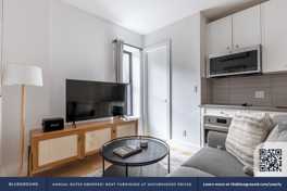 This furnished rental is located in the West Village. Cute storefronts and some cobblestone streets give the charming neighborhood the feel of a quaint small town. Populated with shoppers, diners and art lovers. The historically artistic area has numerous piano bars, cabarets, and theaters to discover. Both Times Square and Wall Street are just 15 minutes away by subway.