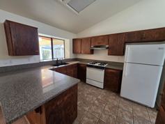 Beautiful Home in Southwest Visalia. Kitchen has granite counter tops, tile flooring, and a gas stove. Skylight over living room for natural lighting along with a warm fireplace complete the living room. All bedrooms have ceiling fans. Covered patio in the backyard.