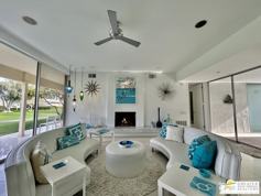 Originally designed by architect Richard Harrison in 1967 this Fantastic Mid-Century decorated 2 Bedroom 2 Bath plus den unit with Fireplace open floor plan and private patio for inside/outside living and entertaining. Adjacent to Ted Robinson 18 hole designed Golf Course and steps away from one of Seven Lakes 15 Community Pools with Spa and Kitchenette to entertain family and friends. Enjoy Tennis, Pickle Ball or dinning in the Clubhouse. Call Agent for availability, Not available until July 2026