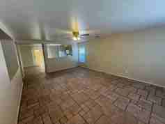 This charming home features a large living room with an open floor plan, creating a bright and spacious living area perfect for relaxing or entertaining. Tile flooring runs throughout the home, offering both style and easy maintenance.