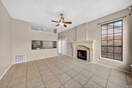 Welcome to this beautiful one-story home featuring 3 bedrooms and 2 bathrooms. The open floorplan creates a spacious and inviting atmosphere, perfect for entertaining or everyday living. High ceilings throughout enhance the sense of space and light. Ceiling fans are installed throughout the home, and there is no carpet, offering sleek, easy-to-maintain flooring. The kitchen is equipped with sleek black appliances and flows seamlessly into the living area, which features a cozy fireplace. The primary bedroom boasts high ceilings, a ceiling fan, and a spacious walk-in closet, creating a private retreat for relaxation. Enjoy quick access to 1604 and 90, with only a 13-minute drive to Lackland AFB, making commuting simple and convenient.