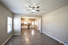 Check out this newly renovated duplex! It has a modern, open floor plan with sleek stained concrete floors, a kitchen decked out with updated shaker cabinets, and stainless steel appliances. The primary suite features a walk-in closet and a private bath, with the other bedrooms on the opposite side of the home for added privacy. There's also a separate laundry room with washer/dryer hookups to make laundry day a breeze. Step outside to a big backyard on a corner lot with only one neighbor! It's complete with a partial privacy fence and handy storage shed. Plus, it's in a great spot-right near the new library and a quick hop onto IH 35 for easy trips to San Antonio or Austin! **Home does allow for larger pets with slight increase to pet rent!!
