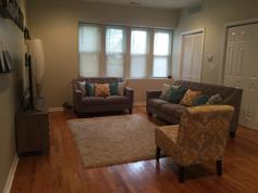 Newly remodeled 2 bed, 1 bath apartment with 15ft high ceilings, granite sinks in bathroom and kitchen, high efficiency furnaces, central air, and a large landscaped yard. 1 month's deposit necessary upon lease signing. Good credit and 2.5x monthly rent income required. Contact me via call or text for further details.