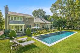 Rental Reg. # 22-249 Enjoy summer in the Hamptons in this 2-story cedar-shingle farmhouse in East Hampton's desirable Dune Alpin community. A covered front porch welcomes you through to an airy entry foyer. The common spaces flow through living, dining and open concept kitchen and family rooms. The living room has a gas fireplace, ceiling-to-floor windows, French doors, and 11' ceilings. The dining room also connects both the living room and eat-in kitchen. The open concept kitchen and family room features high-end appliances, Caesarstone countertops, and large seating area with wood burning fireplace. The first floor en-suite primary bedroom has large windows, 2 closets, and a luxe bath. A garage and powder room complete the first level. Upstairs, a skylit gallery leads to 2 bedroom suites both with baths and large closets. The second floor also has a large second primary bedroom with multiple closets and ensuite bath. A laundry room is conveniently located on the second floor. The partially finished lower level has exceptionally high ceilings, 2 window egresses and could easily serve as a rainy day play area. French doors in the common spaces make entertaining and dining al fresco on the 60' bluestone patio a breeze. There is a 40'x12' heated gunite pool and community tennis courts. The world famous beaches and Village of East Hampton are nearby as is shopping, dining, transportation & public tennis. Listing ID: 899308
