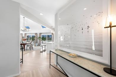 Beautifully renovated home in sought after Dune Alpin community - with no major road frontage, this property offers quiet and serenity all day. This 4 bedroom, 3 bath modern traditional was lovingly redone in 2019 from top to bottom including new floors, new kitchen, new bathrooms, a new heated Gunite pool and all new furnishings. Soaring ceilings and walls of glass make the open Living/dining area a perfect place for gathering of family and friends. The open kitchen with stone counters and stainless appliances is the perfect place to make those summer dinner dreams into reality! Four bedrooms include three on the first floor (two with a Jack & Jill bath and one can be either set up as nursery or with queen bed) and the entire 2nd floor as a Master Suite. The finished lower level offers a huge Media area and a separate work area. Outside offers magnificent multi-level decks with multiple sitting and dining areas covered by retractable awnings and stone patios all leading to the spectacular and sunny 18' x 38' heated pool overlooking the HUGE fenced yard and serene surrounding pasture lands - and with full Western exposure, a perfect place to enjoy sunsets daily. There is a storage available for bikes and beach equipment in one of the garage bays. The Dune Alpin Community Association offers tennis to guests (fee) and is conveniently located by Red Horse Market just minutes from East Hampton Village.