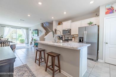 Adorable like new 2 bedroom 2 & 1/2 bath townhome is the perfect place to call home! Located in a quiet part of the community, you will love the view of lake and conservation. Open concept floor plan offers living and dining combo with California island kitchen. Conveniently located half bathroom is downstairs. Upstairs you will find 2 spacious bedrooms, each with ensuite bath and walk-in closet. Laundry room and additional storage closet are also upstairs. Smart home security including camera doorbell are included. Residents in Jennings Point have access to their own clubhouse and pool plus all of Oakleaf Middle Village CDD amenities.