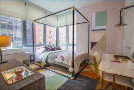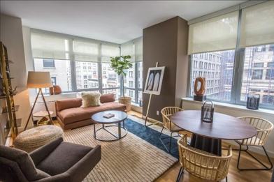 Walk into your plush, contemporary TriBeCa apartment, open concept living with lovely white oak hardwood floors throughout, an eat in chef's kitchen, floor to ceiling windows with modern privacy shades and gourmet modern eat-in chefs kitchens with granite counters and stunning concrete tile floors.