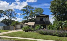This unique 4-bedroom A-frame home in Central Port St. John is just minutes from I-95 and SR528. Located near the Space Center, you can enjoy thrilling rocket launches right from your backyard. The property sits on a large lot with a double gate, offering ample space for a boat, RV, or toys. A newer shed is also available for tenant use. The home features a cozy, cabin-like atmosphere with recent upgrades, including new paint, flooring, and finishes throughout. The main living area is inviting, with a flexible bonus room that can be used as an office, formal dining room, or whatever suits your needs. This room is adjacent to two bedrooms downstairs and the open living and kitchen areas. Extra storage is available under the stairs, and a washer and dryer hookup is conveniently located next to the kitchen. With a rural feel yet close to city amenities, this home provides a one-of-a-kind rental experience in a peaceful, exciting location.