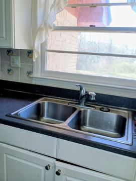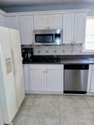 • Side-by-side fridge, built-in microwave, double oven, stovetop, and dishwasher