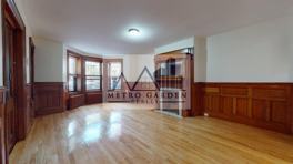 - original ornate moldings and wood accents in living room with quality refinishing throughout