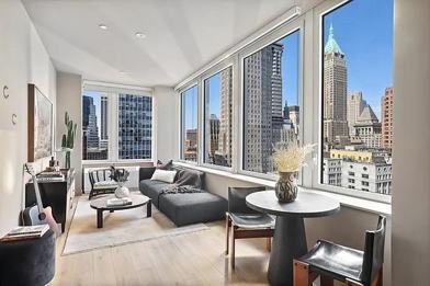 Downtown One Bedroom With Scale, Storage & Light Full-Service FiDi LivingThis 1-bedroom / 1-bathroom apartment is a smart choice for anyone looking to upgrade their space without overcomplicating their life. Located in a full-service building with professional amenities, this home delivers solid value with great volume, excellent layout, and abundant closet space. The apartment offers a bright and open living area, an efficient kitchen setup, and a generous bedroom that comfortably fits a queen bed, dresser, deskand still breathes. Its designed for how people actually live and work today. What Youll Love Inside Wide windows and great light High ceilings and clean modern finishes Open kitchen with microwave, dishwasher, and lots of cabinetry Marble-tiled bathroom with soaking tub Washer/dryer in unit Multiple closets and layout flow that feels functional