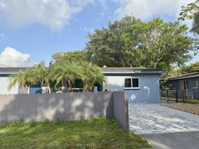 Brand New Remodeled 2 bedroom. Everything has been updated and new. New pavers, landscaping, fresh paint, new fence, security cameras, appliances, kitchen, new large tile flooring, marble flooring in screened back patio, New Hurricane Impact French Doors, new bathroom, new AC. Move in ready. Great location close to FLL Airport, Beach, Downtown Dania/Hollywood & Hard Rock Casino. No HOA.