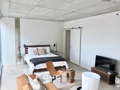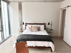 Enter your large Convertible with a quick wave of a fob. Floor-to-ceiling windows and 9-high, exposed concrete ceilings lend an airy feeling to living spaces; custom solar shades add privacy. Whats most important to you: a dining room table ... or work space? The large in-line kitchen, maxed out on storage and design flexibility, leaves you room for choice.