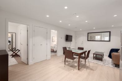 This is a bright and modern fully furnished 800 sq ft 2 bedroom and 1 bath basement suite. The 8 ft ceilings and open layout provide good flow. Both bedrooms have queen beds and plenty of closet space.