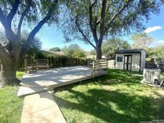 Delightful single story home on large corner lot, shaded with mature trees and ready for your personal updates! Skylight provides natural light to kitchen. Backyard has a large deck with seating, great for entertaining and relaxing, plus a shed for extra storage. Less than 3 minutes from Comanche Lookout Park. GREAT LOCATION! Convenient to schools, Randolph AFB and Shopping.