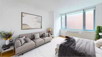Upon entering this exquisite Flex 2 residence, you'll be greeted by a bright and spacious living area bathed in natural light, thanks to the oversized windows that frame stunning views of the surrounding cityscape. The high ceilings create an expansive atmosphere, while the hardwood floors exude a sense of warmth and sophistication. The gourmet kitchen is a chef's dream, featuring top-of-the-line stainless steel appliances, granite countertops, and custom cabinetry. Whether you're hosting a dinner party or whipping up a quick meal, this kitchen combines functionality with elegance. The master bedroom is a tranquil retreat, adorned with plush carpeting and generous closet space. The en-suite bathroom offers a spa-like experience, boasting a deep soaking tub and a separate glass-enclosed shower. Residents of Tribeca Park are treated to an array of amenities that cater to their every need, including a 24-hour doorman, concierge service, fitness center, and a landscaped rooftop terrace that provides a serene escape from the bustling city below. Tribeca itself is renowned for its vibrant cultural scene, world-class dining, and high-end shopping, all of which are within easy reach of this exceptional apartment. The Tribeca Park apartment isn't just a place to live; it's a testament to the epitome of luxury living in one of New York City's most coveted neighborhoods.