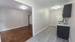 Discover timeless elegance and modern comfort in this newly renovated apartment that perfectly blends contemporary upgrades with classic charm. Freshly painted in soft gray tones and featuring brand-new gray plank flooring throughout, this home offers a bright and stylish foundation for any décor. The inviting living area showcases decorative wall molding and large windows that fill the space with natural light, creating a warm and welcoming ambiance. The kitchen has been beautifully updated with dark gray cabinetry, a subway tile backsplash, marble-look countertops, and stainless steel appliances, including a gas range and refrigerator. The bathroom retains its classic white tiled bathtub surround, now paired with a modern gray vanity and new fixtures for a fresh, cohesive look. Ready for immediate move-in, this apartment is ideal for renters seeking a cozy, updated space that balances character, comfort, and modern style.