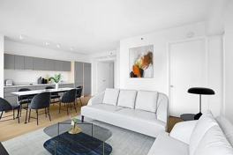 Enjoy modern living in this chic, thoughtfully designed apartment, featuring an open layout and an abundance of natural light. The apartments contemporary design is complemented by high-end finishes, from sleek countertops to stylish fixtures. The living spaces are designed with functionality in mind, offering plenty of room for relaxation or hosting guests. Large windows brighten the apartment, creating a sense of airiness, while the modern kitchen and bathroom fixtures elevate the overall experience.