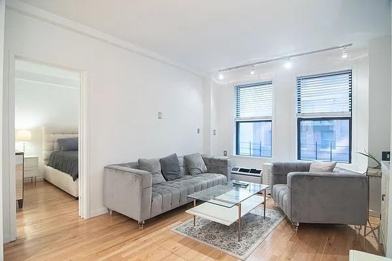 W 58th St #5A, New York, NY is a 1 bedroom, 1 bathroom apartment for rent. It is located in the Theater District neighborhood of New York. It has apartment amenities including wi-fi, dishwasher, air conditioning, hardwood floor, on-site laundry, and furnished. Cats and dogs are allowed, making it a pet-friendly apartment.