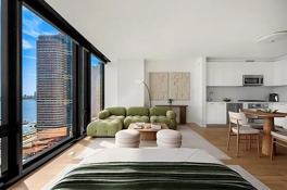 This apartment offers a modern, open layout that enhances both space and light. Designed with contemporary living in mind, the space is filled with clean lines, neutral tones, and high-end finishes. Large windows bring in ample natural light, creating a warm and welcoming atmosphere. The kitchen is outfitted with modern appliances, while the living area is perfect for entertaining or relaxing. The sleek, minimalist design is complemented by luxurious touches, making this apartment an ideal retreat from the bustle of city life.