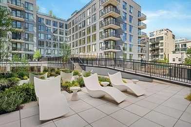 Front St #4126, New York, NY is a 2 bedroom, 2 bathrooms apartment for rent. It is located in the Vinegar Hill neighborhood of New York. It has apartment amenities including garden, in-unit laundry, dishwasher, balcony, hardwood floor, and air conditioning. Cats and dogs are allowed, making it a pet-friendly apartment.