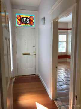 Classic period charm with high ceilings, wood floors, 2 working fireplaces and a built-in bookcase.