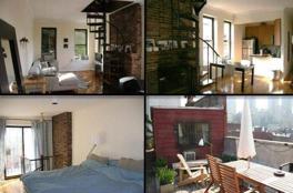 Skylight, Modern, Windowed Kitchen, Granite Counter Top, Stainless Steel Appliances, Hardwood Floors, High Ceilings, Large Bedroom Space, Exposed Brick Wall, Fireplace