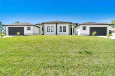 Move-in Special! $200 off of 1st month rent! AVAILABLE October! Welcome to this stunning 3 bedroom, 2 bathroom duplex in Lehigh Acres, FL. This property features modern finishes with vaulted ceilings, quartz countertops, garden tub in primary bedroom, tiled throughout, and spacious garage. This property won't last long! Don't miss out on this gem! NO PETS ALLOWED. Close proximity to I75, SR82, airport, gym, shopping centers, and much more! Easy application Process