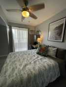 NOTE: the size of the unit can be compared to a small hotel room but is designed in a way that provides ample space for efficiency- with a kitchenette and a desk to work remotely. The balcony is an added plus for a private outdoor space. For couples staying longer than a weekend or a week, this space may feel too tight for an extended period stays.