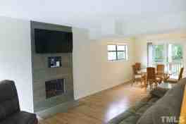 This home is convenient to downtown Chapel Hill, downtown Carrboro and UNC Campus. A deck style front porch welcomes you to the home. The living area is open to the dining space, all with hardwood style laminate flooring. The living area features a wood accent paneled wall with an electric fireplace and a built-in shelf. The dining area leads out to the rear deck through a glass slider. There is a storage closet on the deck. The dining space is convenient to the kitchen. The kitchen is detailed with a tile backsplash. Kitchen appliances are included. The laundry closet is in the kitchen, a washer and dryer are also provided. All of the bedrooms have hardwood style laminate flooring and ceiling fans. There is one bedroom and a full bathroom on the main level. The bathroom on this level has a shower. The second full bathroom is on the second level convenient to the remaining bedrooms. This bathroom has a tub-shower. There is parking pad in front of the home with space for two cars [the drive is shared with the adjoining duplex, spaces in front of Unit B are reserved for use by unit B.] The furnishings in photos are not included. There is a security system - service is included. [Louise Beck Properties, Inc is marketing this property on behalf of the owner to secure a lease. Once a lease is secured Louise Beck Properties will not be the management company for this property.] Pet allowed with prior approval.