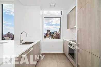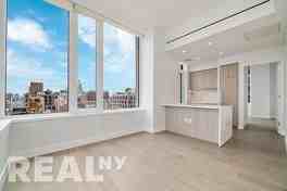 Stunning 1BR with Triple Exposure South, East & West!Available Starting August 1stPlease EMAIL or MESSAGE to schedule a viewing no calls or texts. Residence 17E combines refined design with open, sun-drenched living, featuring 10.5-foot ceilings, wide-plank wood floors, and a seamless layout. Enjoy the convenience of an in-unit Bosch washer/dryer, neatly tucked into a designated closet. The modern chefs kitchen is outfitted with top-tier finishes and appliances:Calacatta quartz countertops with full-height backsplashIntegrated cabinetry and custom millworkBertazzoni stainless steel convection oven and hoodInduction cooktop, Blomberg refrigerator & dishwasherKohler undermount sink with Brizo fixturesThe spa-inspired bathroom is your personal sanctuary, designed with Porcelanosa white tile, a Hydro System soaking tub, Brizo shower heads, and elegant finishes from Kohler and Duravit. Building Amenities Include:Rooftop terrace with panoramic skyline viewsResident rooftop lounge & second-floor club loungeFitness centerBike storageThis Passive House-certified residence offers cutting-edge sustainability with up to 85% energy reduction, enhanced indoor air quality, and ultimate comfort. Move-In Costs:First Months RentOne Month Security Deposit$20 Application Fee per ApplicantOptional: $50/mo Amenity FeePet Fee: $50/mo