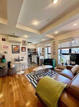 Sun Drenched Large 1 bed 1 bath with large kitchen/ living area and ample cabinet space, stainless steel appliances, dishwasher as well as a microwave. Apartment features:Rent stabilized lease!Large living roomQueen Size Bed Room w room for deskCentral AC/HeatingHardwood Floors throughoutHigh CeilingsClosets in Each roomVideo intercomElevator building with roof access and laundry/bike room in basement. The location:Easy access to the G,J trainsOne block away from Herbert Von King ParkSurrounded by an abundance of conveniences for dining, shopping and entertainingNote: photos are of a similar layout/finishes and not indicative of the actual unit.