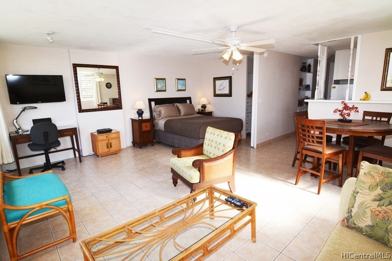 rate quoted is 6 month rate. Guava unit. Deluxe, clean, large, full kitchen convertible 1 bedroom. Fully furnished. Cool ceramic tile floors. All bed/bath linen, towels, mats, iron. Cable. Pool, gas bbq, laundry in unit. Secure. Steps to Intl marketplace, Royal Hawaiian Shopping center, Duty Free, Ala Wai Canal promenade. Old Hawaiiana feel.