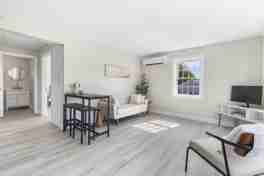 Year-Round, unfurnished rental for this trendy condo! This chic 1-bed, 1-bath unit is part of a sleek 8-unit building fully transformed from commercial to coastal-modern living. Enjoy quartzite countertops, nickel gap accent wall, tall kitchen cabinetry with pantry, and a range that triples as oven, stove, and air fryer. In-unit washer/dryer combo, walk-in tiled shower, and mini splits for efficient heating and cooling make life easy. First-floor perks include your own small garden space. Rent covers landscaping, trash removal, snow, water, basement storage unit. First, last and security due at lease signing. 12 month lease required. Tenant responsible for electric and cable.