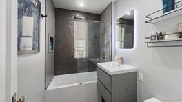 **Please make appointments for showing in advance.** Step into this 1-bedroom co-op blending modern upgrades with timeless design at an exceptional value. Custom elongated kitchen with premium cabinetry, glass-front display cabinets, stainless steel appliances , and soft-close pull-out drawers for maximum function. Spa like bathroom with Italian tile, heated floors, and smart lighting to adjust the ambiance or control the A/C with Alexa voice commands or app. Brand-new windows improve insulation and sound reduction. Expansive living and sleeping areas feature 9-ft ceilings and original oak flooring. Just 2 blocks from the 2/5 subway and commuter bus lines 11/12. Well-managed co-op with elevator, laundry, live-in super, and secure entry.