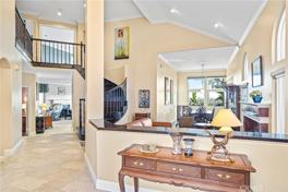Showcasing unmatched luxury and sweeping bluff top views is this gorgeous residence which is situated at the heart of a quiet neighborhood cul-de-sac in the highly sought after hilltop enclave of Moulton Ranch in Laguna Hills. This is the one! With high-end finishes throughout, a downstairs ensuite bedroom, a custom hardscape view yard with an in-ground spa with waterfall and a truly enviable floor plan don’t miss this chance. Starting with great curb appeal, including the custom stonework hardscape, mature planting beds and a grassy lawn enter through stunning custom French doors into a soaring vaulted ceilings foyer and formal living room. With great light from large yard view windows, a focal point fireplace – the first of three in the home – and ample space to spready out the formal living room is open to the formal dining room with large patio view windows which flood these formal spaces with a wealth of afternoon natural light. Off of the dining room is the chef’s kitchen which has upgraded cabinetry, top-tier stainless steel appliances, a central island with possible bar seating and a dedicated task sink and a bar peninsula that extends all the way to an adjoining dry bar with stacked wine refrigerators. The kitchen also features a sizeable casual eat in area and view windows out to the patio. Sharing the great room vibe is an oversized family room which has an abundance of space, the second hearth, and is open to the dry bar making this the perfect place to entertain. With French doors out to the patio deck this space offers true indoor/outdoor living. A downstairs ensuite bedroom with step in shower, a guest half bath and an inside laundry room completes the lower level. Upstairs is a large second family room space and 3 additional bedrooms that start with the spacious primary suite which has a stunning spa like ensuite with a custom dolphin shower enclosure, granite counters, a privacy water closet door, a walk in closet and great light. A cozy third fireplace and a private panoramic view deck complete this must-see primary retreat. Two additional bedrooms and an updated guest bath complete the upper level. Featuring an attached 3 car garage, a 3 car driveway, and countless upgrades, make sure you see this home! Minutes from a local neighborhood park, great schools, shopping, dining and commuting options, the beach and everything South County has to offer don’t miss this opportunity!
