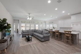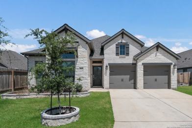 Fully furnished and move-in ready, this luxurious single-story home in Kallison Ranch offers comfort, style, and convenience in one seamless package. Featuring approximately 2,300 square feet, this home includes four spacious bedrooms, three full bathrooms, and a half bath, all set beneath soaring 13-foot ceilings that accentuate the open floorplan. A beautifully appointed chef's kitchen anchors the main living area with its large island, walk-in pantry, and stainless steel appliances. The expansive windows throughout flood the home with natural light, creating an inviting and uplifting environment. The main suite offers a spa-like bathroom retreat complete with a soaking tub, walk-in shower, and dual vanities, while a dedicated downstairs office provides a quiet space for productivity. This home is designed for entertaining with large living and dining areas that flow seamlessly into the outdoor space featuring a covered patio and privacy-fenced backyard. Built in 2020, additional highlights include ceramic tile flooring, a two-car garage, full furnishings, included utilities and yard maintenance. Conveniently located near Northside ISD schools, Lackland AFB, SeaWorld, shopping, and dining, this is a perfect option for those seeking high-end, turnkey living in northwest San Antonio.