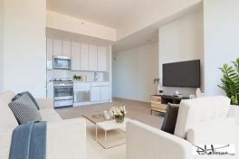 This inviting three-bedroom flex residence offers the perfect blend of warmth, comfort, and modern style, creating a home that feels both cozy and sophisticated. Sunlight streams through expansive windows, illuminating an open living space designed for both relaxation and connection. The kitchen is thoughtfully appointed with high-quality appliances, stone countertops, and custom cabinetry, making it an ideal setting for home-cooked meals or casual entertaining. The bedrooms are generously proportioned, providing restful retreats, while the flexible layout allows for a home office, guest space, or creative nook, adapting seamlessly to your lifestyle. Beyond the apartment, residents enjoy a suite of amenities that enhance comfort and daily living. A fully equipped fitness center and wellness spaces provide options for staying active, while the heated indoor pool and spa offer serene escapes for relaxation. Social spaces, including a residents lounge, game room, and screening area, provide cozy spots to gather with friends or unwind quietly. Outdoor terraces offer panoramic city views and intimate spaces for reflection or casual entertaining. With a 24-hour attended lobby, concierge and valet services, secure package handling, and attentive on-site management, every detail is designed for convenience and peace of mind. Combining warmth, functionality, and a vibrant downtown setting, this home offers a truly welcoming and elevated living experience